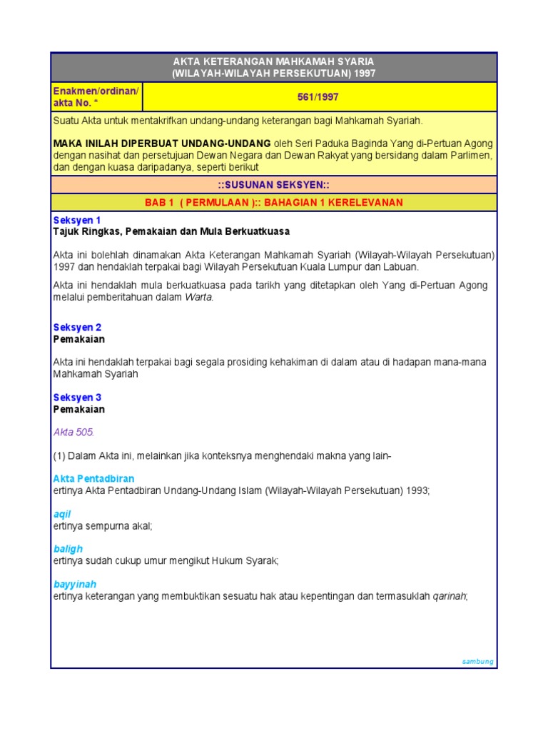 Enakmen pentadbiran agama islam (negeri johor) 2003. Akta undang² keluarga islam w.p (a303) 1984 pindaan (a 828). Ordinan undang² keluarga islam sarawak,no 5/1991. Mengatur hubungan antar manusia dalam hidup bermasyarakat. Akta kesalahan jenayah syariah (wp) 1997. Pengenalan • perlembagaan malaysia dirangka berdasarkan konsep federaslisme. Perlembagaan persekutuan dan perlembagaan negeri. • 'anak dara' ertinya seorang perempuan yang belum pernah bersetubuh, sama ada sudah berkahwin atau belum Jump to navigation jump to search. Untuk pelaksanaan tanggungjawab berkaitan islam, akta pentadbiran agama islam ialah akta utama. Akta:undangundang yang digubal oleh perlimen sejak september 1959. Bagi mewujudkan keharmonian dalam keluarga & menyelesaikan masalah yang dihadapi keluarga atau dalam perkahwinan. Dengan akta tersebut juga membolehkan wujudnya majlis ugama islam singapura (muis) yang berperanan menjaga kepentingan komuniti muslim di.
