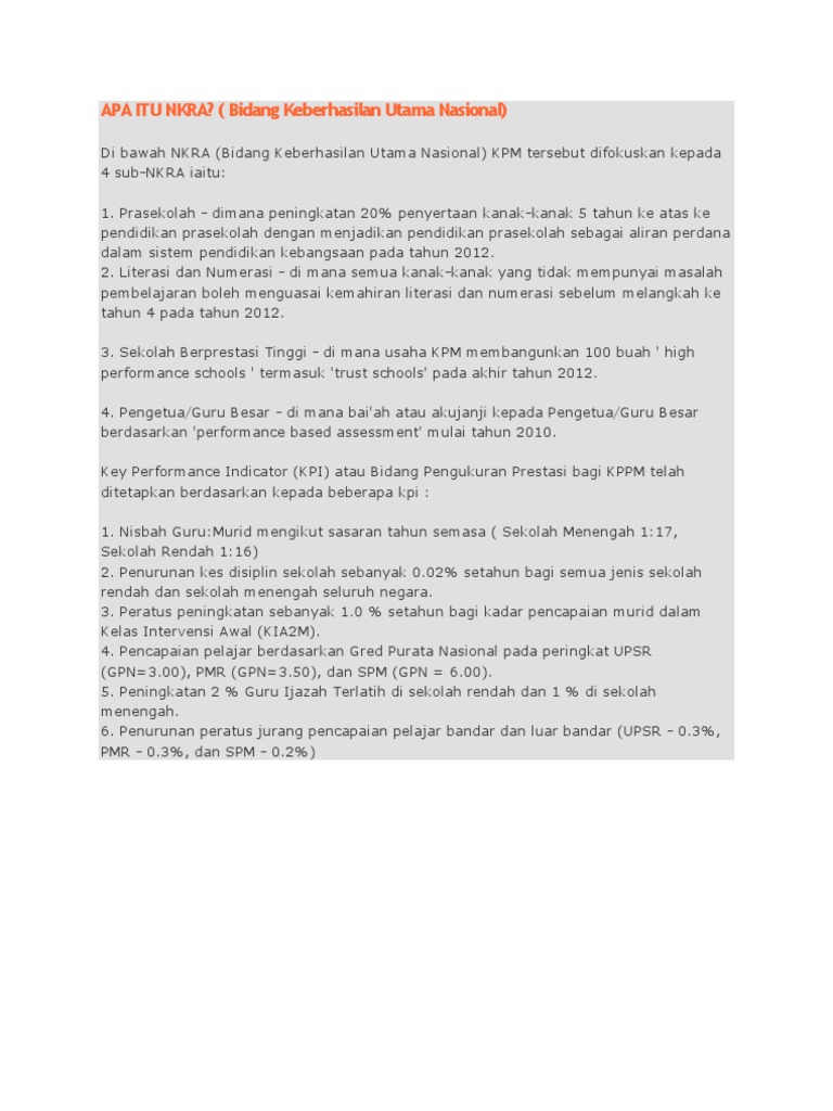 Related : Apa Itu Nkra Pendidikan - (nkra = bidang keberhasilan utama negara)..