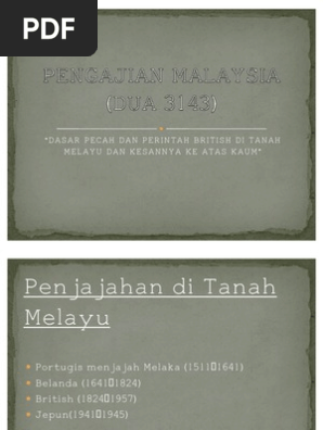 Dasar Pecah Dan Perintah British / Pelaksanaan dasar pecah dan perintah bermula apabila british membawa masuk kaum cina dan india ke tanah melayu.. Dasar penjajah inggeris yang mengamalkan konsep pecah dan perintah merupakan satu tindakan yang berkesan dan telah menjadi punca wujudnya jurang antara kaum sama ada dari sudut ekonomi dan juga polarisasi kaum. Dasar pecah dan perintah yang diperkenalkan oleh british juga melebarkan lagi jurang perpaduan antara masyarakat dan akhirnya membawa kepada tradegi hitam dalam sejarah negara iaitu rusuhan kaum 13 mei 1969. I do not own any of the songs or sounds on this video. Mereka dah membina kerajaan di tanah ini lebih 3000 tahun! Dengan penaklukan pulau pinang pada tahun 1786, bermulalah pemasukan orang cina ke tanah melayu.